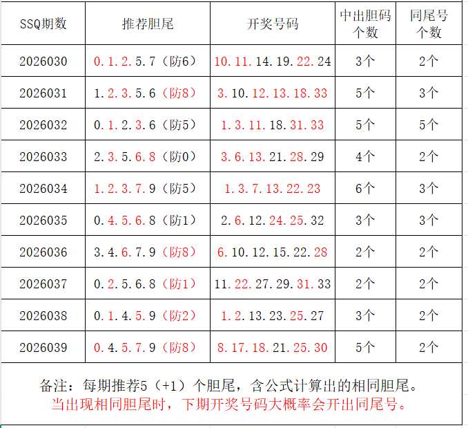 如图,每期推荐胆尾中出1-4个。上期推荐胆尾中出4尾5码!推荐胆尾是按照公式计算的顺序,不定位红球号码的顺序。本期推荐胆尾:2尾/3尾/8尾/7尾/6尾 。加推重点胆尾:***(会员专区可见)。推荐胆码号码:***(会员专区可见)。个人分析,仅供参考。