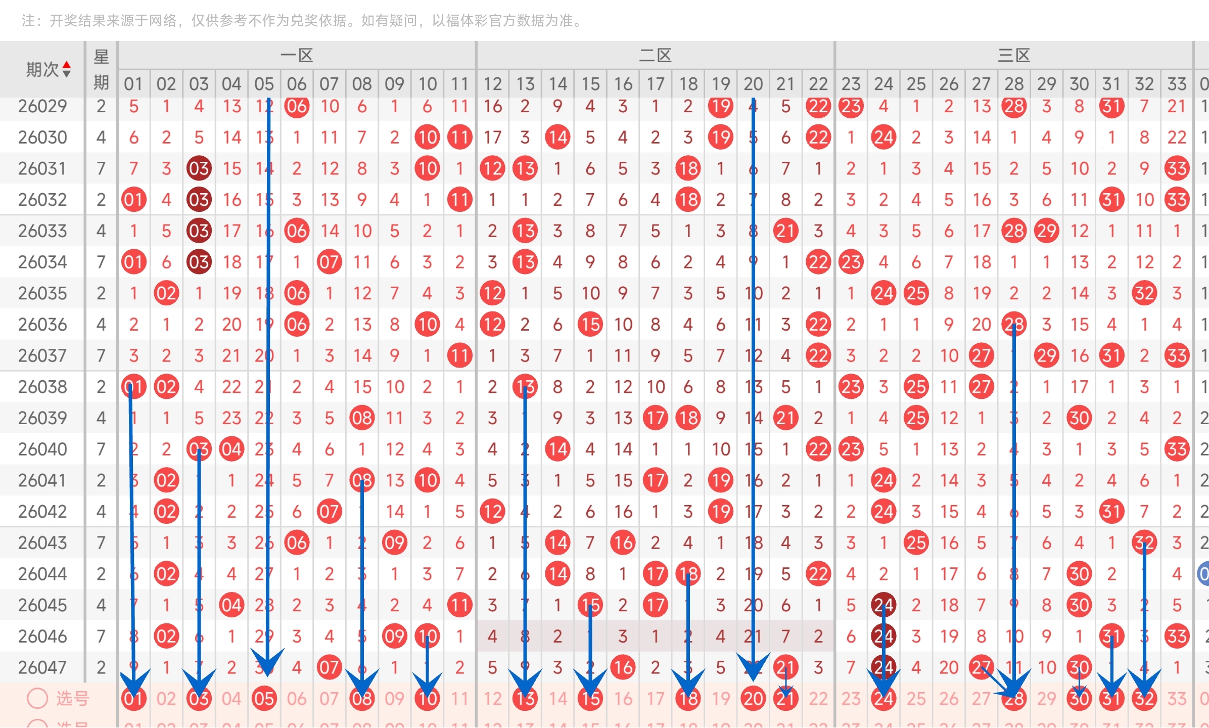 第26040期双色球文章中推荐中命中3,4,14,33等4个红球。