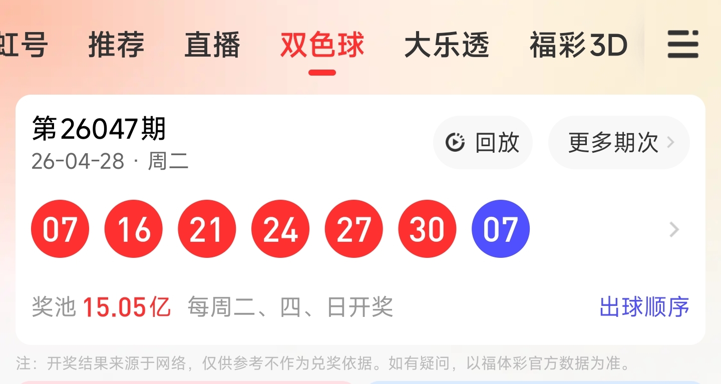 第26047期双色球文章中推荐,命中4+1,红球2胆命中24。