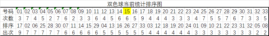 红球15码大底统计顺序:02,06,25,30,11,14,15,29,04,13,16,26,27,33,03