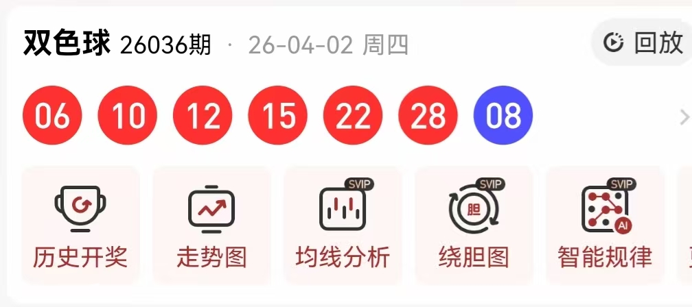 先来回顾一下第2026036期的双色球开奖结果:06 10 12 15 22 28+08,以下是对本期数据的详细分析:
