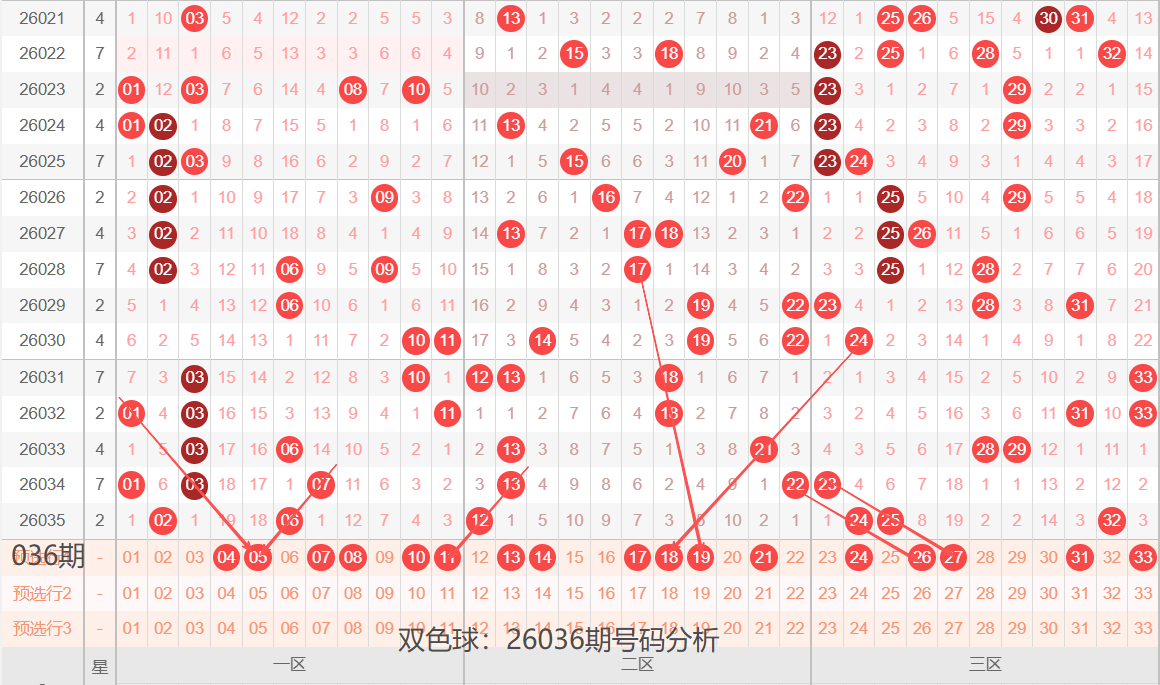 双色球:26036期号码落位分析