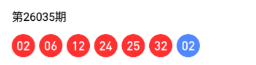 26035:02尾2,06尾6,12尾2,24尾4,25尾5,32尾2,有02、12、32同尾2。