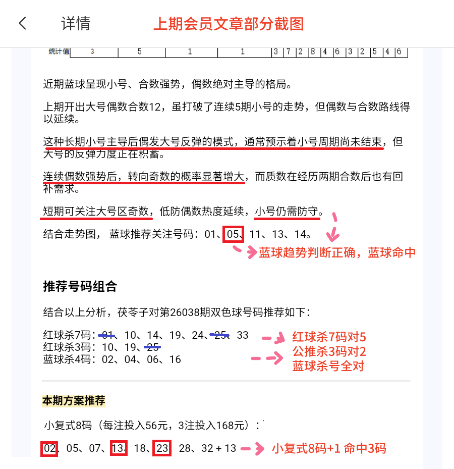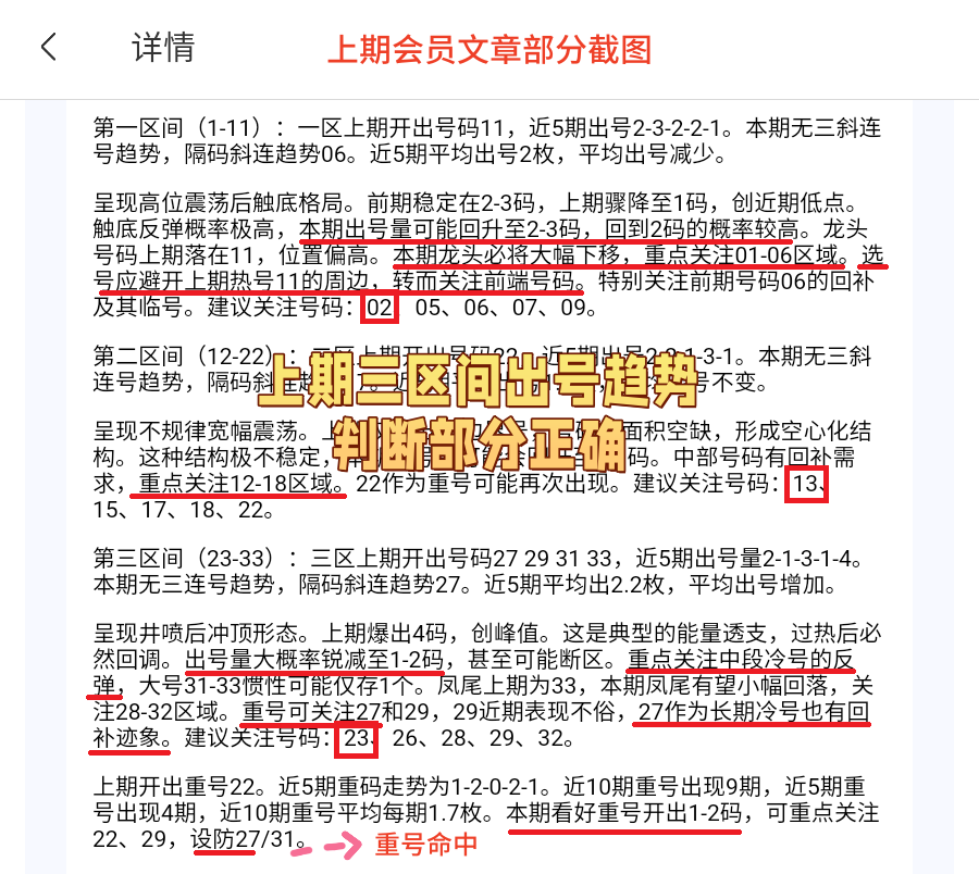 会员文章中重号命中1码,1注小复式8+1命中3码,大底命中3+1,综合命中4+1,本期再接再厉!