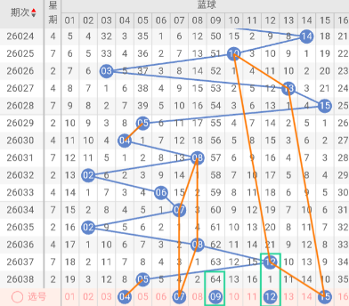 结合走势图综合判断, 蓝球推荐关注号码:04、07、09、12、15。