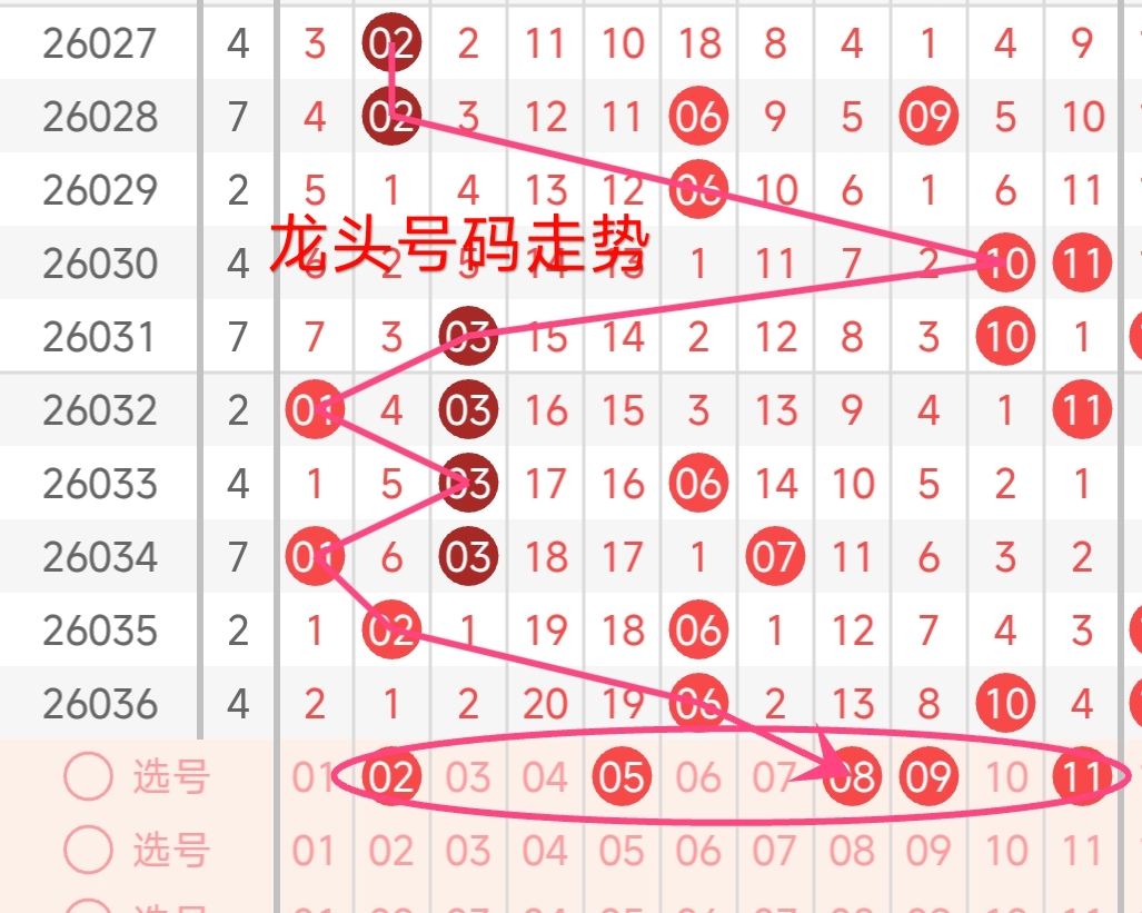 龙头号码走势分析: