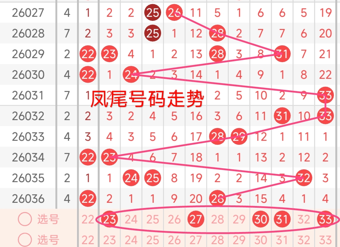 凤尾号码走势分析: