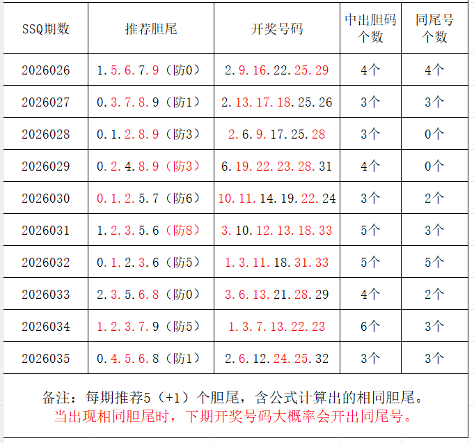 如图,每期推荐胆尾中出1-4个。上期推荐胆尾中出3尾3码!推荐胆尾是按照公式计算的顺序,不定位红球号码的顺序。本期推荐胆尾:6尾/4尾/9尾/3尾/7尾 。加推重点胆尾:***(会员专区可见)。推荐胆码号码:***(会员专区可见)。个人分析,仅供参考。