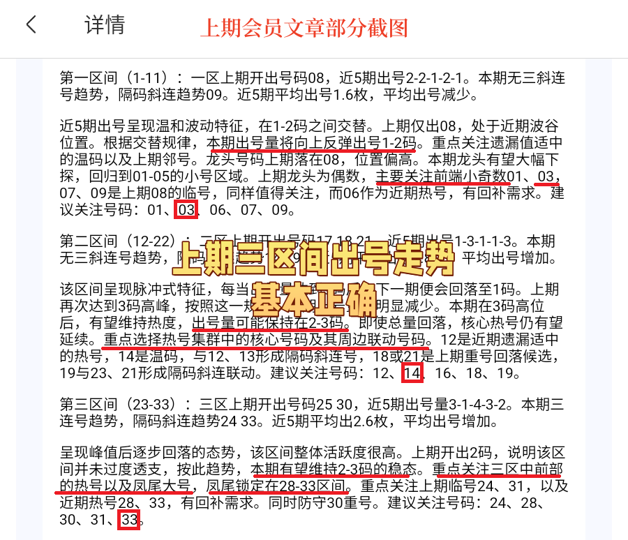 会员文章每个区间给出更详细的分析,说明整体走势的最新趋势,重号和连号均有推荐。