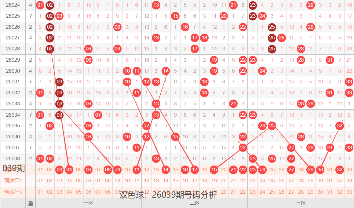 双色球:26039期号码落位分析