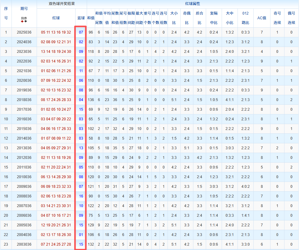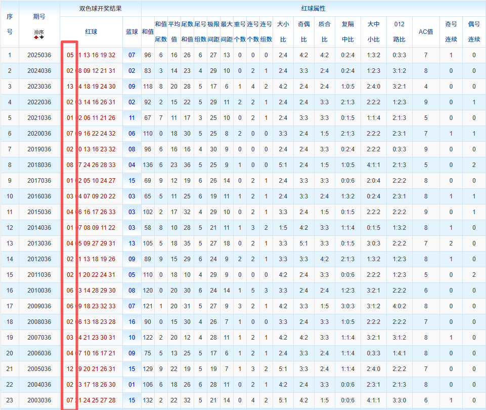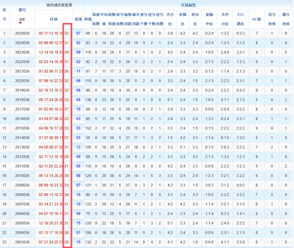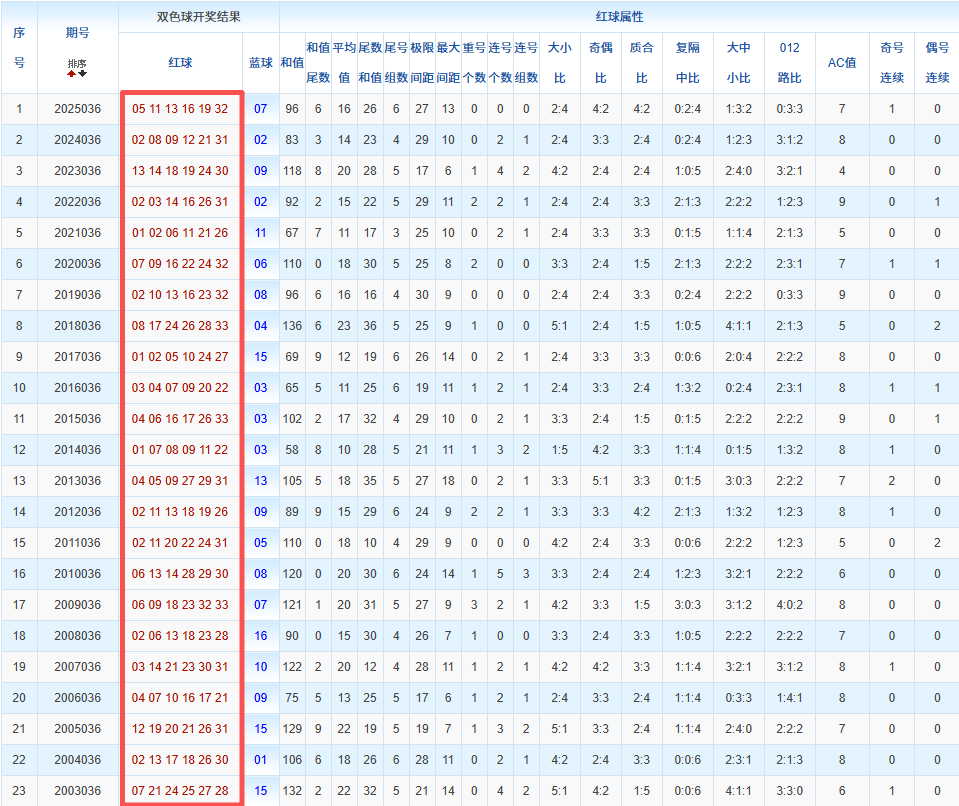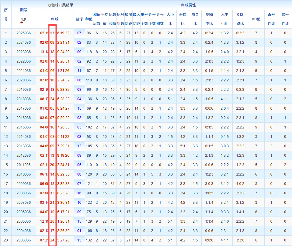 通过观察,我发现双色球往年同期的开奖数据与本期号码之间存在显著关联。具体来说,在红球中,从第一位至第六位,通常会有约4个位置上的数字与往年同期相同位置的号码一致;而蓝球号码中,也有多期开奖结果直接包含了往年同期的数字。因此,我们可以借助往年同期各位置上的号码,作为分析本期开奖情况的重要依据。在此基础上,还可结合往年同期的其他相关条件,进行综合性的号码组合推荐。