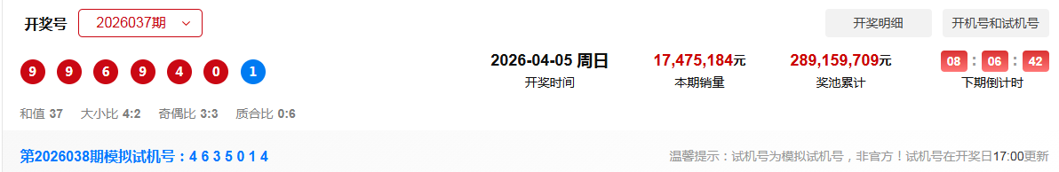 后三个号码也是同理。特别号码就是后区的唯一号码