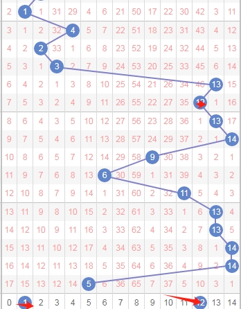 上图是体彩七星彩从左到右第二位数字,我标注出来的蓝色小箭头表示合数数字,很明显合数数字比较多,那么本期第二位数字可以关注出质数数字12357,个人最看好数字2357。