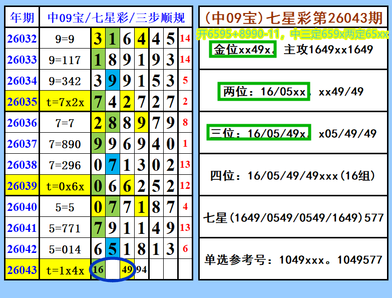 七星彩第26044期(综合图文),单选推荐,视频上期中三定659xxxx两定