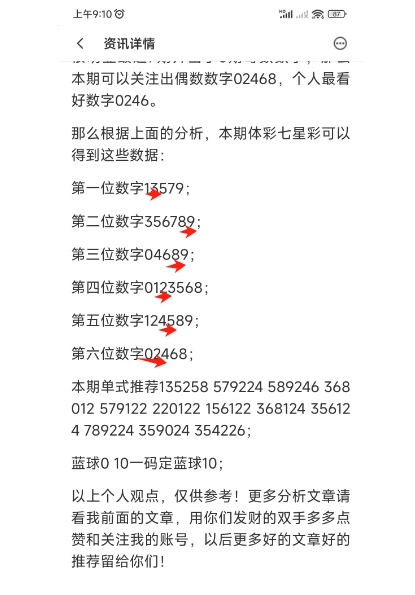 上图是上期体彩七星彩号码分析文章截图,我最后推荐的复式是猜对了前区6个数字,也就是二等奖,这个你们去看上期的号码分析文章吧。