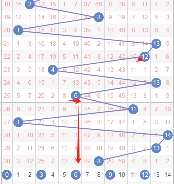 上图是体彩蓝球开奖号码走势分布图,我标注出来的数字都是蓝球号码0路球数字0 3 6 9 12到本期为止蓝球0路球数字已经连续遗漏了5期,那么本期或者近期大家记得留意一下蓝球0路球数字。